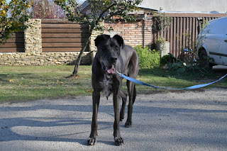 Német dog fajtamentő csoportunkhoz megérkezett Bonnie, a 6 év körüli kajla lány német dog.